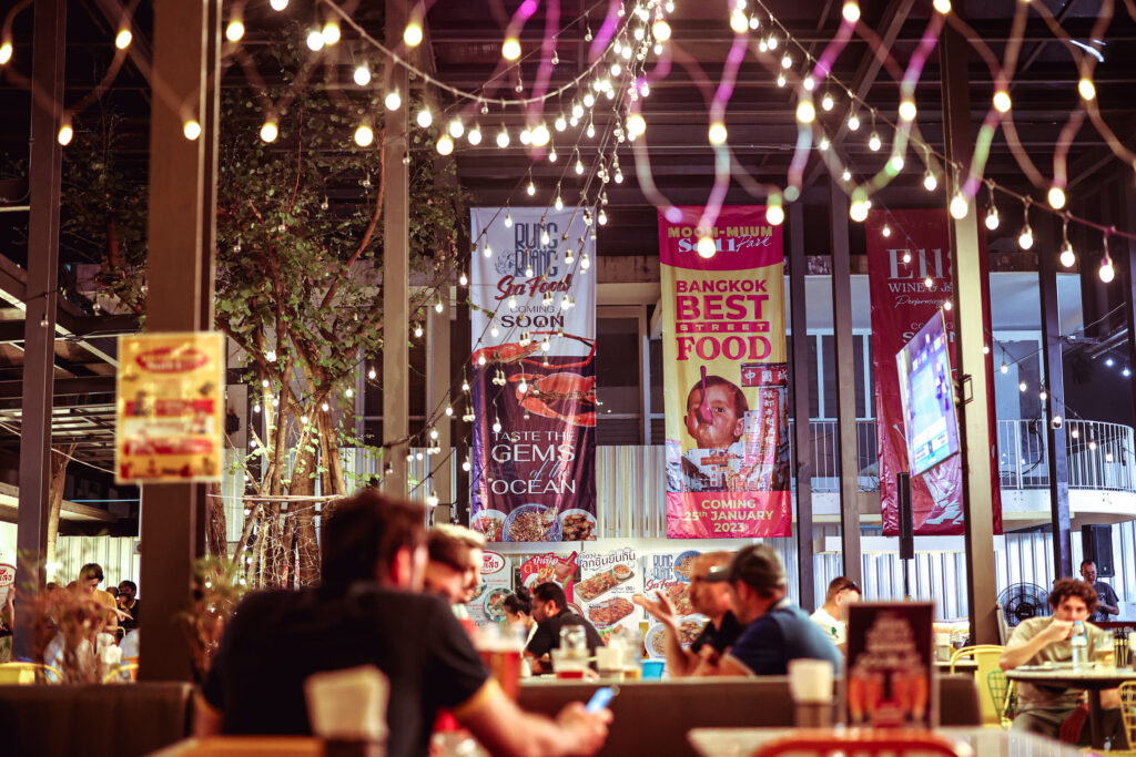 Moom-Muum Park at Sukhumvit 11 offers a different kind of dining experience—an open-air Thai restaurant and bar set in a lively outdoor atmosphere. Here, guests can enjoy bold and authentic Thai flavors paired with refreshing drinks, making it the perfect place to relax and unwind with friends and family. Whether you’re craving traditional Thai street food, fresh seafood, or a laid-back evening under the stars, this location brings the essence of Thailand’s vibrant food culture to life.